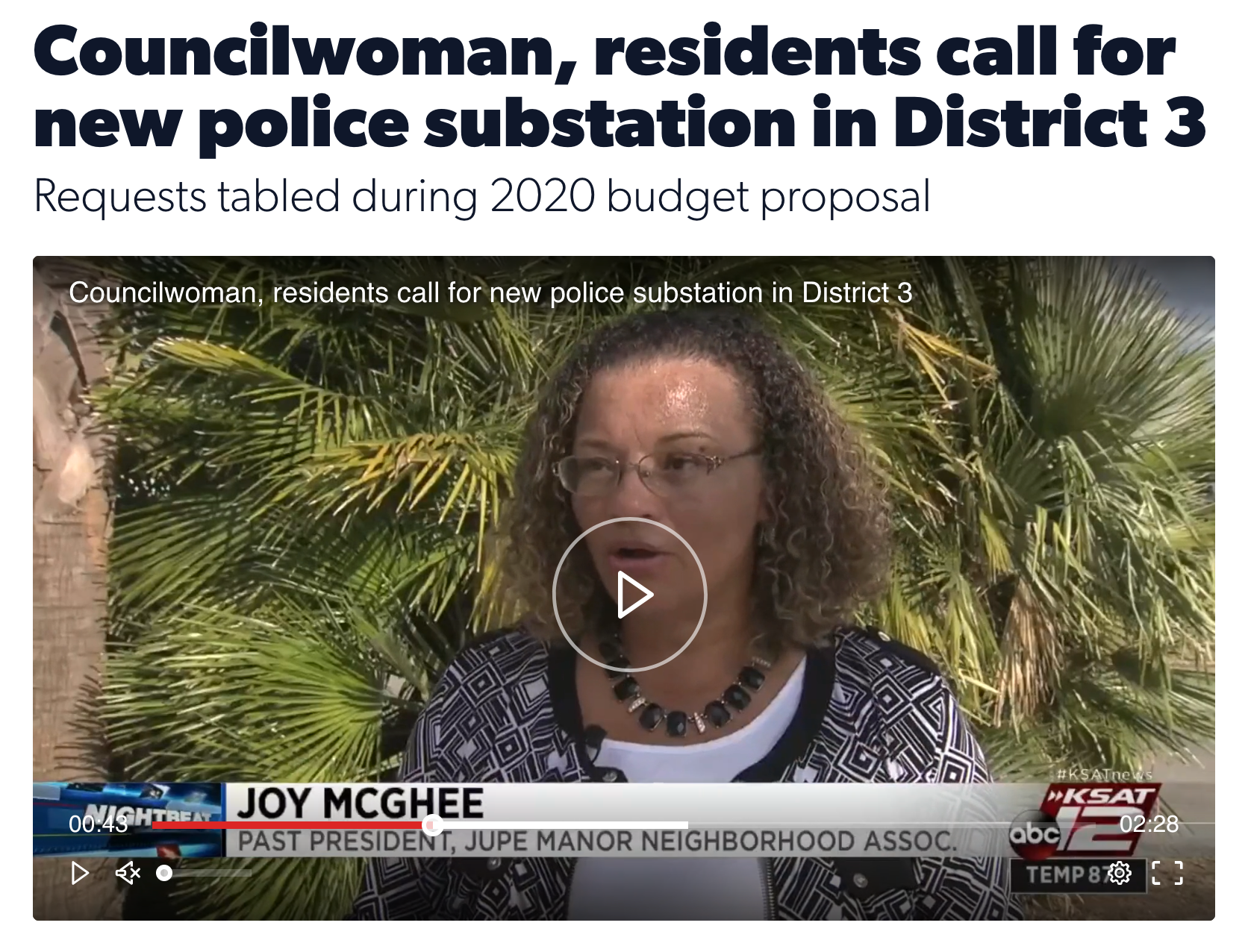News Report KSAT 12 August 2019 Councilwoman,residents call for new police substation in District 3